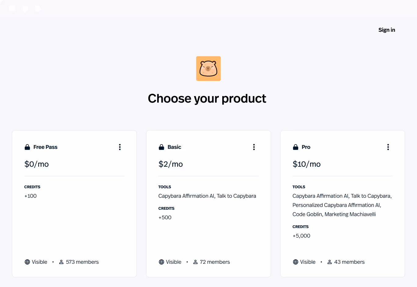 Sell your AI tools as a product. Set up bundles, prices, usage limits, accounts, & more!