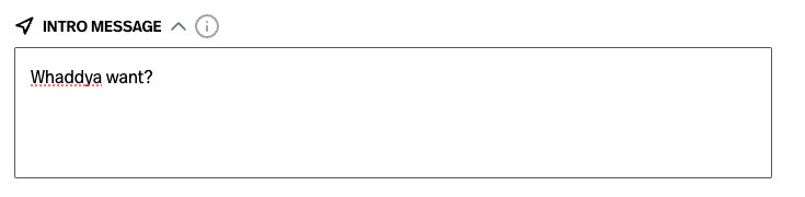Here you can set a message that will immediately greet the user when they open the chatbot. This intro message is for mostly for the user, so keep them in mind when you write it.
