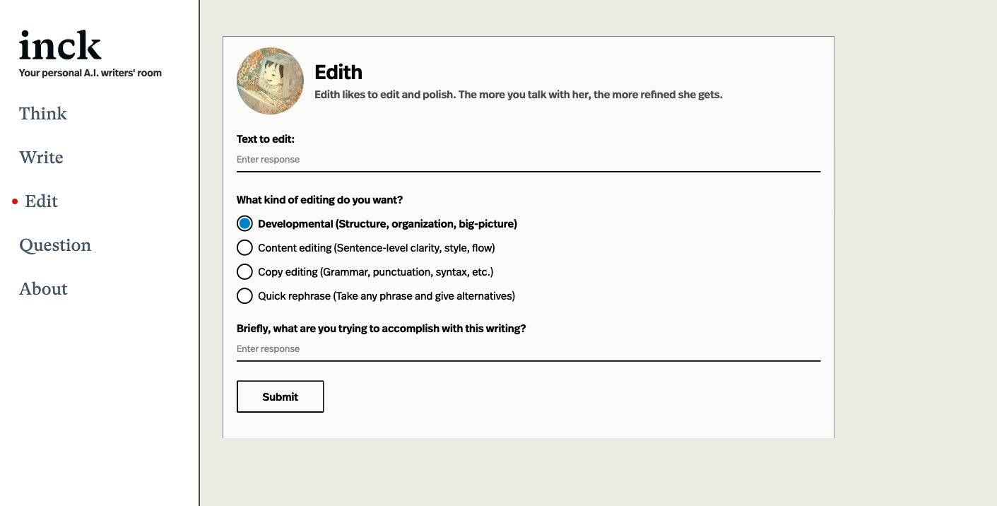 Check out this website that offers a personal AI writers room for brainstorming, writing, and editing copy.